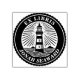 A stylish Ex Libris design with a lighthouse in a rocky wavy sea. Black outer circle with an incised edge, Text in white. Change the name to customise.