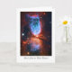 A gorgeous greetings card featuring a star forming region in Constellation Cygnus (The Swan). This Hubble image shows a dust-rich, interstellar gas cloud with a new-born star in the centre of the hour-glass shape. The glowing blue of the hydrogen in this nebula is due to the jets being emitted from the forming star as dust falls into into it and this causes the heating and turbulence of the hydrogen. The star, known as S106 IR, is reaching the end of its birth and will soon enter the much quieter period of adulthood known as the main stage.