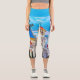 High Waist Capri Leggings featuring a view of the colourful illuminated spires and entryway of the mediaeval castle at the Excalibur Hotel in Las Vegas at dusk, made as a digital watercolor painting The text reds "Las Vegas" and it's totally customisable.