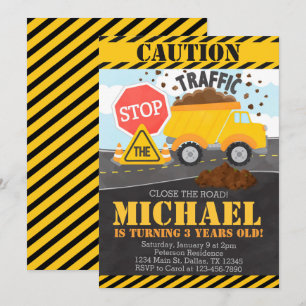 Construction Dump Truck Digger 2nd Birthday Invitation