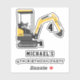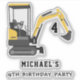 Perfect theme birthday party sticker for kids who love construction vehicles. Add a name, and party details by clicking the "Personalise" button. Features an excavator in yellow and dark grey vivid colours.