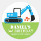 Construction excavator cartoon for kids birthday party. Suitable for boys who loves truck, bulldozer, excavator, crane and more big transports. Cute stickers for children birthday party favour or bridal shower. Customise the wording for any occasion with children.