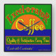 A kitchen wall clock with new, vintage-look coffee label artwork reading Excel-o-rator Coffee, Quality and Satisfaction Every Time in retro letters.