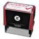 This positive rubber stamp design features the motivating feedback message "Excellent!" and a personalised teacher's name. It also features a decorative check mark icon. It could be used by a school teacher, educator, instructor, or tutor when marking assignments, to acknowledge that a student has done well.