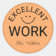 This sticker design features the message "EXCELLENT WORK!" This motivational rubber stamp could be used by a teacher when grading assignments, to acknowledge a student who has done a great job.