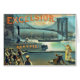 An allegorical representation of the state of New York points to a steamship sailing beneath the Brooklyn Bridge. Meanwhile, Alexander Hamilton keels over and a group of people look on aghast.