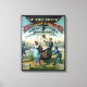 Circa 1885 - Advertisement for Ginger Ale with balloon and basket with black attendants. Two women drink Excelsior Ginger Ale, implying the carbonation helps the balloon to rise. Image of two fashionably dressed women in slim long dresses and bonnets embarking on a hot air balloon ride, one stands inside the basket holding a lace-edged handkerchief with a moustached balloon operator with binoculars and a monocle, the other sips ginger ale from a glass as she begins to ascend a rope ladder into the craft; two African-American men with ginger ale bottles attend the balloon; a large crowd of people watches the spectacle from stands behind a white wood fence painted with advertising slogans