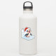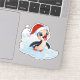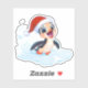A cute penguin is excited to celebrate Christmas. She's wearing a Santa hat and kicking up snow as she slides around.