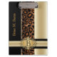 Clipboard - An elegant stylish leopard animal print with champagne, gold and shimmery black accent for your company, workshop, office, home or school. Beautiful Executive Monogram Design. 100% Customisable. Ready to Fill in the box(es) ⭐This Product is 100% Customisable. Graphics and text can be deleted, moved, resized, changed around, rotated, etc... 99% of my designs in my store are done in layers. This makes it easy for you to resize and move the graphics and text around so that it will fit each product perfectly. You can also "TRANSFER DESIGN" on other Zazzle products and adjust the design to fit most of Zazzle items. (button is down on the right side of the page) Some of the text graphics have ready to fill in the box(es) or you can Click on the CUSTOMIZE button to add, move, delete, resize or change any of the font or graphics. The design is made with high resolution vector and/or digital graphics for a professional print. ⭐NOTE: (THIS IS A PRINT. All zazzle product designs are "prints" unless otherwise stated under "About This Product" area) The design will be printed EXACTLY like you see it on the screen and on the product...so please make sure when you do your changes on the resizing of any of the graphics or text that it fits in the areas correctly and that your spelling and wording is how you like it to be in size, colour and font. If you have any questions about the "DESIGN" or need help please contact me at siggyscott@comcast.net or visit my store link: http://www.zazzle.com/designsbydonnasiggy?rf=238713599140281212 (Copy and Paste) I'll be happy to help. ⭐ All other questions (shipping, refund, the printing, the product, etc...) please contact Zazzle or the Maker ⭐DIRECTLY⭐. Thank you for the support and stopping by my store - DesignsbyDonnaSiggy. © Donna Siegrist