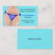 Stylish all purpose exercise instructor's business card, done in aqua, with graphics of a woman's mid section wearing a bikini bottom. Text in blue and black, on the front and back of the card, is fully customisable to read what ever you need. Great card for yoga, jazzercise, dancing exercise, Zumba, any fitness style program you teach.