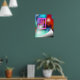 Navigate the abstract with "Exit Path," a poster that is both a vibrant burst of colour and a conceptual journey. Set against a soft-focus, blurry backdrop of fiery reds and cool blues, a bright pink, barcode-like frame stands as a central point of intrigue. Sweeping around this geometric centerpiece are two sleek, metallic silver curves, suggesting a dynamic path forward and a sense of constant motion. This piece is a "Neo Silly" exploration of finding a way through chaos, blending sharp graphic elements with fluid, ethereal backgrounds. "Exit Path" is perfect for a modern space, offering a thought-provoking and visually striking piece of art that inspires new perspectives.