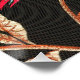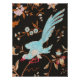 Antique fine brown woven asian fabric with exotic orange pink flowers, blue turquoise birds and bugs and butterflies of embroidered silk.