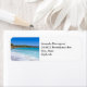 Address labels with a photograph featuring a beach on the Greek island Crete. A beautiful tropical blue beach with foamy surf. Wonderful tranquil travel destination.