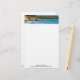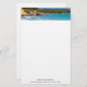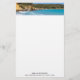 Stationery paper with a photograph featuring a beach on the Greek island Crete. A beautiful tropical blue beach with foamy surf. Wonderful tranquil travel destination.