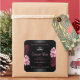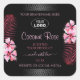 Make a lasting impression with this elegant and exotic product label design featuring lovely pink hawaiian flowers and palm leaves on a black background. A cool palm leaf shadow matching to the shimmery border frame.
