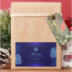 Make a lasting impression with this elegant and exotic product label design featuring pretty teal hawaiian flowers and palm leaves on a dark blue background. A cool palm leaf shadow matching to the shimmery border frames.