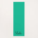 This chic yoga mat design features an exotic green, gold and black leopard print pattern. At the top is a wide green panel with a template for your name and initial in black and gold. The reverse side is solid green with your name at the bottom.