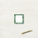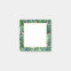 Small square post-it notes made with an image of big leafy lush green tropical leaves with a splash of pink behind. Painted with acrylics and digitised. A white frame with a faux gold foil border layered over top