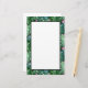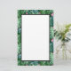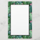 Stationery with a summery feel. Background is a pattern of exotic tropical philodendron leaves in green. Hand painted digital image. A hint of pink in the background. A white frame layered over top to write inside.