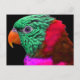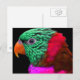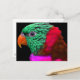 Gorgeous exotic parrot in a vivid green, red, and hot pink with purple ringed eyes.