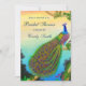Make an elegant statement with this personalised, double-sided peacock invitation! Original fine art design by Carolyn McFann of Two Purring Cats Studio.