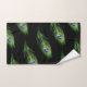 A cascading of exotic brilliant green shaded peacock feathers on a dramatic black backdrop. Enchanting exotic vibes