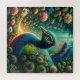 The majestic peacock, with its resplendent tail feathers unfurled, is the jewel in this verdant crown, its blues and greens shimmering with an otherworldly glow. The surrounding foliage, a tapestry of exotic plants and flowers, is alive with the movement of delicate hummingbirds and the soft whisper of leaves.
