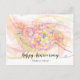 Artistic colour combination in gentle yellow, green and pink colours and a calligraphy script Happy Anniversary.