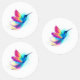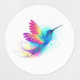 Bright, iridescent, exotic flying hummingbird on white background, painted over with multicolor, watercolor paint. Rainbow hummingbird.