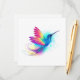 Bright, iridescent, exotic flying hummingbird on white background, painted over with multicolor, watercolor paint. Rainbow hummingbird.