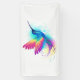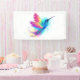 Bright, iridescent, exotic flying hummingbird on white background, painted over with multicolor, watercolor paint. Rainbow hummingbird.