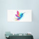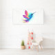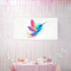 Bright, iridescent, exotic flying hummingbird on white background, painted over with multicolor, watercolor paint. Rainbow hummingbird.