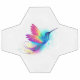 Bright, iridescent, exotic flying hummingbird on white background, painted over with multicolor, watercolor paint. Rainbow hummingbird.