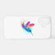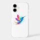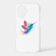 Bright, iridescent, exotic flying hummingbird on white background, painted over with multicolor, watercolor paint. Rainbow hummingbird.