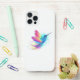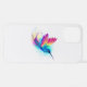 Bright, iridescent, exotic flying hummingbird on white background, painted over with multicolor, watercolor paint. Rainbow hummingbird.