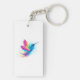 Bright, iridescent, exotic flying hummingbird on white background, painted over with multicolor, watercolor paint. Rainbow hummingbird.