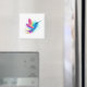 Bright, iridescent, exotic flying hummingbird on white background, painted over with multicolor, watercolor paint. Rainbow hummingbird.