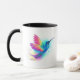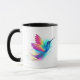 Bright, iridescent, exotic flying hummingbird on white background, painted over with multicolor, watercolor paint. Rainbow hummingbird.