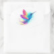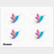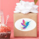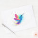 Bright, iridescent, exotic flying hummingbird on white background, painted over with multicolor, watercolor paint. Rainbow hummingbird.