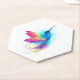 Bright, iridescent, exotic flying hummingbird on white background, painted over with multicolor, watercolor paint. Rainbow hummingbird.