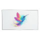 Bright, iridescent, exotic flying hummingbird on white background, painted over with multicolor, watercolor paint. Rainbow hummingbird.