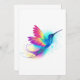 Bright, iridescent, exotic flying hummingbird on white background, painted over with multicolor, watercolor paint. Rainbow hummingbird.