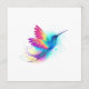 Bright, iridescent, exotic flying hummingbird on white background, painted over with multicolor, watercolor paint. Rainbow hummingbird.
