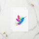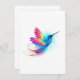 Bright, iridescent, exotic flying hummingbird on white background, painted over with multicolor, watercolor paint. Rainbow hummingbird.