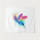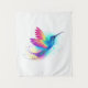 Bright, iridescent, exotic flying hummingbird on white background, painted over with multicolor, watercolor paint. Rainbow hummingbird.
