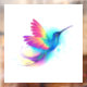 Bright, iridescent, exotic flying hummingbird on white background, painted over with multicolor, watercolor paint. Rainbow hummingbird.