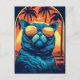 Colourful design of a Exotic Shorthair cat wearing sunglasses at a tropical beach.