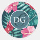 Exotic Summer Flowers Monogram Classic Round Sticker
