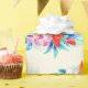 Wrapping paper with a vibrant and beautiful tropical flower bouquet. Orchids, hibiscus and tropical leaves. Pink, turquoise, red and blue colours.
