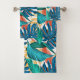 Exotic Tropical Foliage Leaves Teal Blue Sienna Bath Towel Set